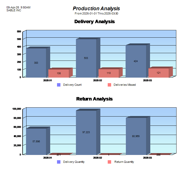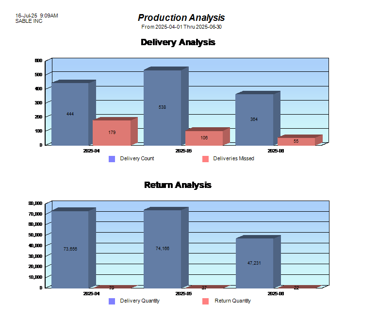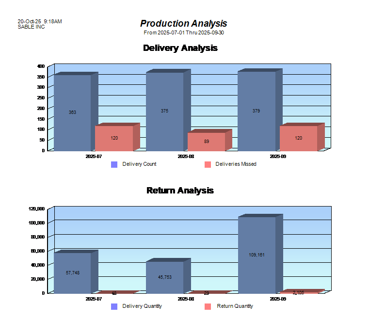 At Sable Metal Fabrication, we believe in transparency and performance accountability. This page showcases our quarterly delivery and quality metrics, highlighting our commitment to on-time performance and product excellence.